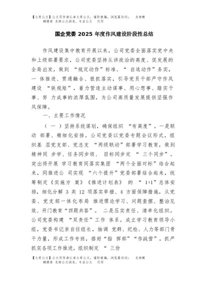 / 【七哥公文】2025年:国企党委2025年度作风建设阶段性总结+更多免费公文+VX:QiGeGongWen2024