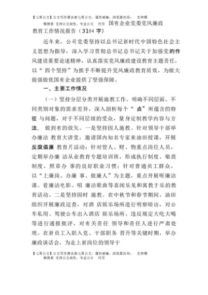 / 【七哥公文】2025年:国企党委党风廉政教育工作情况报告(3104字)+更多免费公文+VX:QiGeGongWen2024