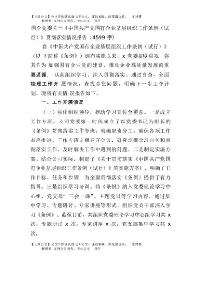 【七哥公文】2025年:国企党委关于《中国共产党国有企业基层组织工作条例(试行)》贯彻落实情况报告(4599字)+更多免费公文+VX:QiGeGongWen2024