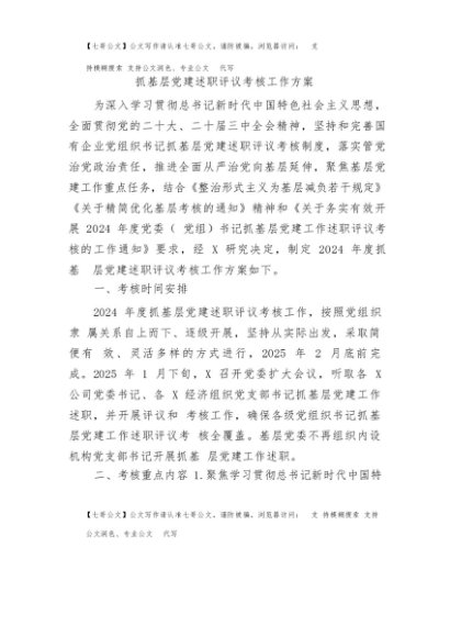 / 【七哥公文】2025年:国企党委抓基层党建述职评议考核工作方案+更多免费公文+VX:QiGeGongWen2024