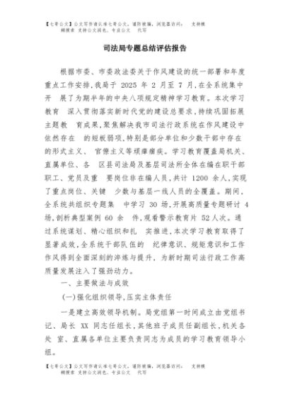 / 【七哥公文】2025年:司法局专题总结评估报告+更多免费公文+VX:QiGeGongWen2024