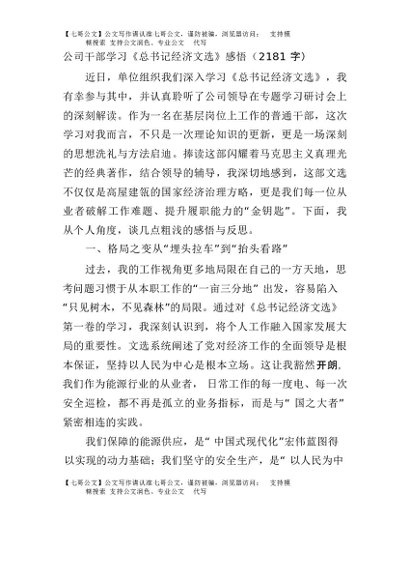【七哥公文】2025年:国企干部学习《总书记经济文选》感悟(2181字)+更多免费公文+VX:QiGeGongWen2024