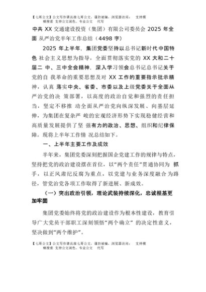【七哥公文】2025年:国企2025年全面从严治党半年工作总结(4498字)+更多免费公文+VX:QiGeGongWen2024