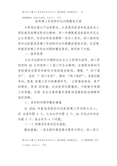 / 【七哥公文】2025年:国企党组织书记抓党建工作述职评议问题整改方案+更多免费公文+VX:QiGeGongWen2024
