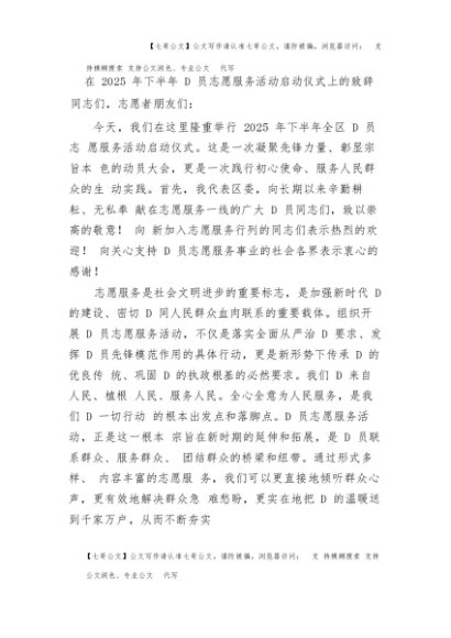 【七哥公文】2025年:在+2025年下半年党员志愿服务活动启动仪式上的致辞+更多免费公文+VX:QiGeGongWen2024