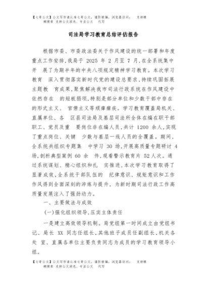 / 【七哥公文】2025年:司法局学习教育总结评估报告+更多免费公文+VX:QiGeGongWen2024