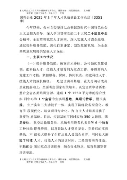 【七哥公文】2025年:国企2025年上半年人才队伍建设工作总结(3351字)+更多免费公文+VX:QiGeGongWen2024