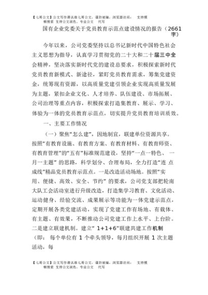 【七哥公文】2025年:国企党委关于党员教育示范点建设情况的报告(2661字)+更多免费公文+VX:QiGeGongWen2024