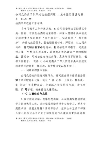 【七哥公文】2025年:国企党委关于作风建设查摆问题、集中整治情况的报告(3623字)+更多免费公文+VX:QiGeGongWen2024