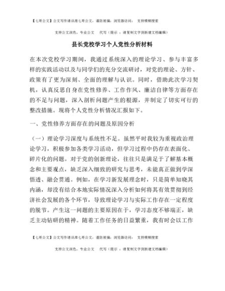 / 【七哥公文】2025年:县长党校学习个人党性分析材料+更多免费公文+VX:QiGeGongWen2024