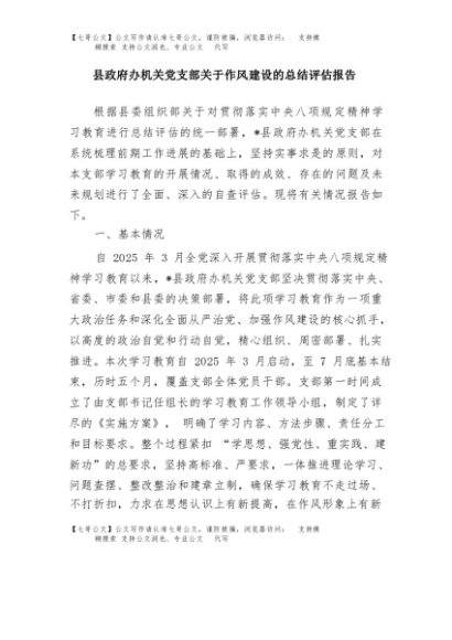 / 【七哥公文】2025年:县政府办机关党支部关于作风建设的总结评估报告+更多免费公文+VX:QiGeGongWen2024