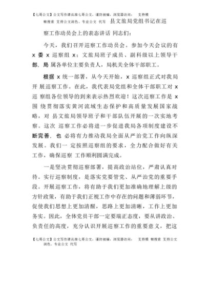 / 【七哥公文】2025年:县文旅局党组书记在巡察工作动员会上的表态讲话+更多免费公文+VX:QiGeGongWen2024