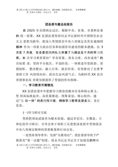 / 【七哥公文】2025年:团县委专题总结报告+更多免费公文+VX:QiGeGongWen2024