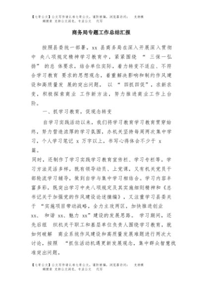 【七哥公文】2025年:商务局专题工作总结汇报+更多免费公文+VX:QiGeGongWen2024
