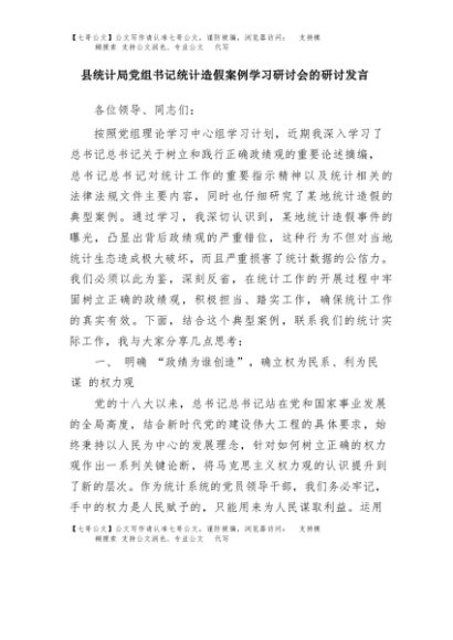 【七哥公文】2025年:县统计局党组书记统计造假案例学习研讨会的研讨发言+更多免费公文+VX:QiGeGongWen2024