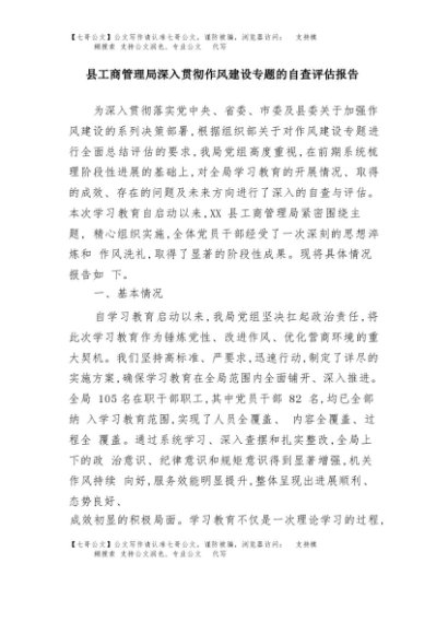 【七哥公文】2025年:县工商管理局深入贯彻作风建设专题的自查评估报告+更多免费公文+VX:QiGeGongWen2024