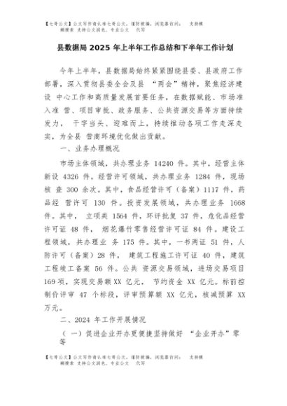【七哥公文】2025年:县数据局2025年上半年工作总结和下半年工作计划+更多免费公文+VX:QiGeGongWen2024