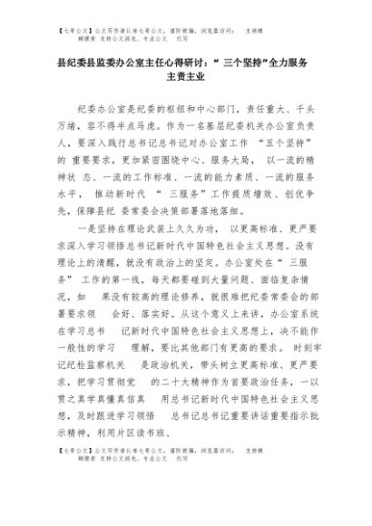 【七哥公文】2025年:县纪委县监委办公室主任心得研讨:“三个坚持”全力服务主责主业+更多免费公文+VX:QiGeGongWen2024