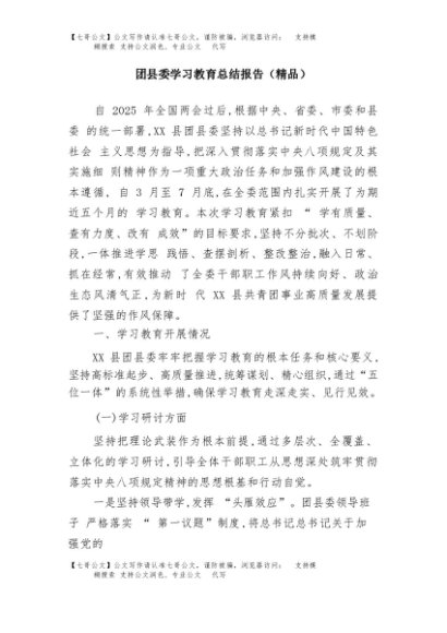 / 【七哥公文】2025年:团县委学习教育总结报告(精品)+更多免费公文+VX:QiGeGongWen2024