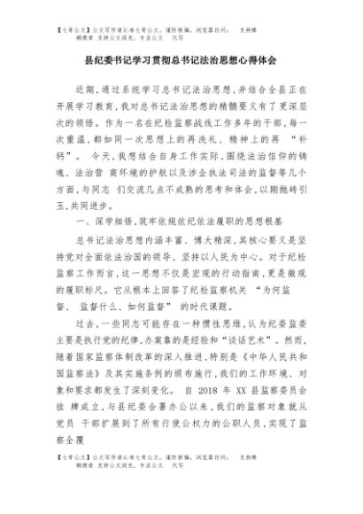 / 【七哥公文】2025年:县纪委书记学习贯彻总书记法治思想心得体会+更多免费公文+VX:QiGeGongWen2024