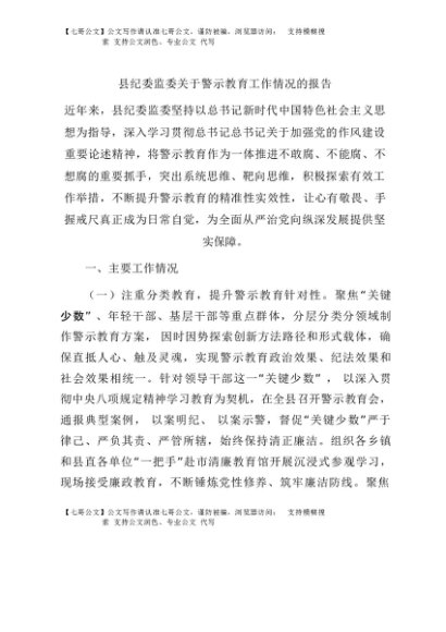 / 【七哥公文】2025年:县纪委监委关于警示教育工作情况的报告+更多免费公文+VX:QiGeGongWen2024