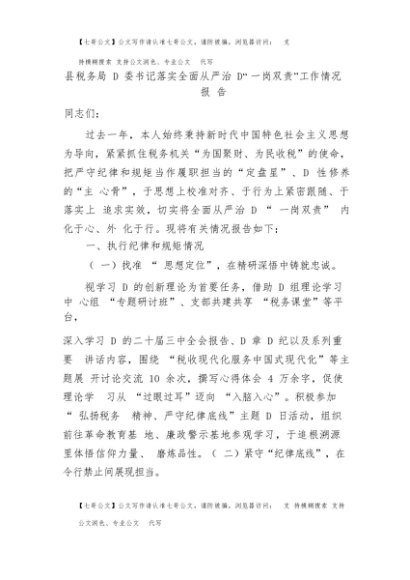 【七哥公文】2025年:县税务局党委书记落实全面从严治党一岗双责工作情况报告+更多免费公文+VX:QiGeGongWen2024