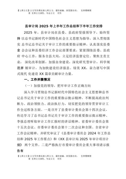 / 【七哥公文】2025年:县审计局 2025年上半年工作总结和下半年工作安排+更多免费公文+VX:QiGeGongWen2024