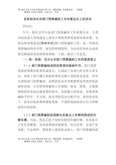 / 【七哥公文】2025年:县财政局长在部门预算编制工作布置会议上的讲话+更多免费公文+VX:QiGeGongWen2024