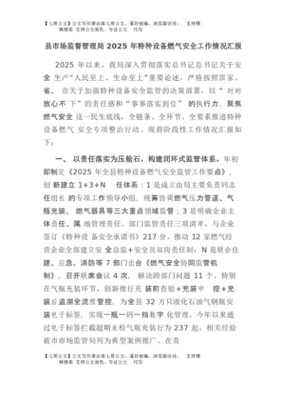 【七哥公文】2025年:县市场监督管理局2025年特种设备燃气安全工作情况汇报+更多免费公文+VX:QiGeGongWen2024