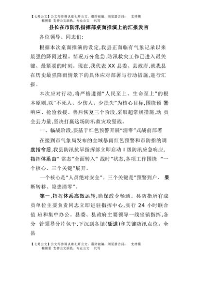 / 【七哥公文】2025年:县长在市防汛指挥部桌面推演上的汇报发言+更多免费公文+VX:QiGeGongWen2024