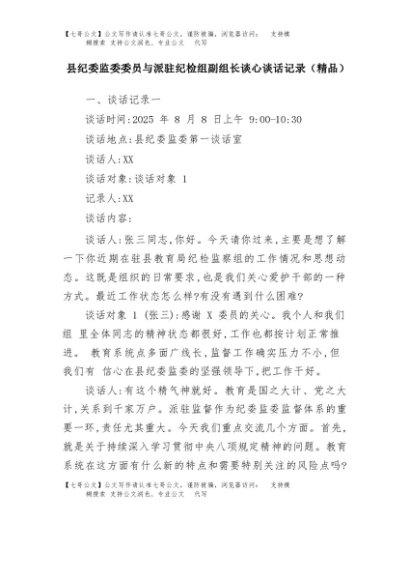 【七哥公文】2025年:县纪委监委委员与派驻纪检组副组长谈心谈话记录(精品)+更多免费公文+VX:QiGeGongWen2024