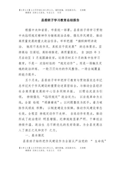 / 【七哥公文】2025年:县委班子学习教育总结报告+更多免费公文+VX:QiGeGongWen2024