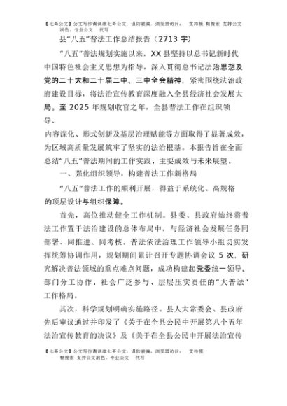 / 【七哥公文】2025年:县“八五”普法工作总结报告(2713字)+更多免费公文+VX:QiGeGongWen2024
