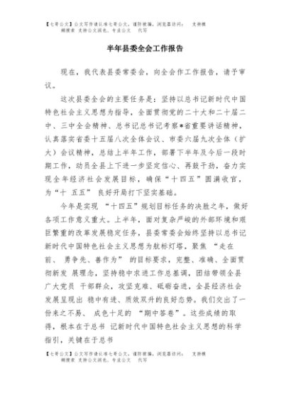 / 【七哥公文】2025年:半年县委全会工作报告+更多免费公文+VX:QiGeGongWen2024