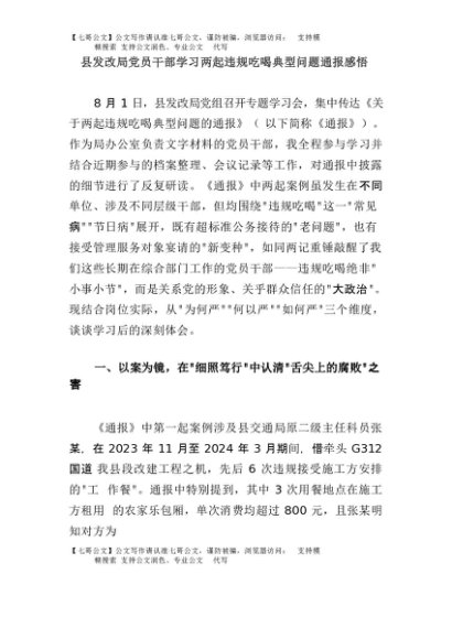 【七哥公文】2025年:县发改局党员干部学习两起违规吃喝典型问题通报感悟+更多免费公文+VX:QiGeGongWen2024