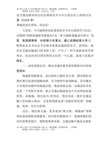 【七哥公文】2025年:县交通运输局局长在县委理论学习中心组会议上的研讨发言(2334字)+更多免费公文+VX:QiGeGongWen2024