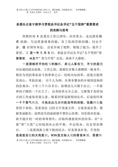 【七哥公文】2025年:县委办公室干部学习贯彻总书记总书记“五个坚持”重要要求的实践与思考+更多免费公文+VX:QiGeGongWen2024