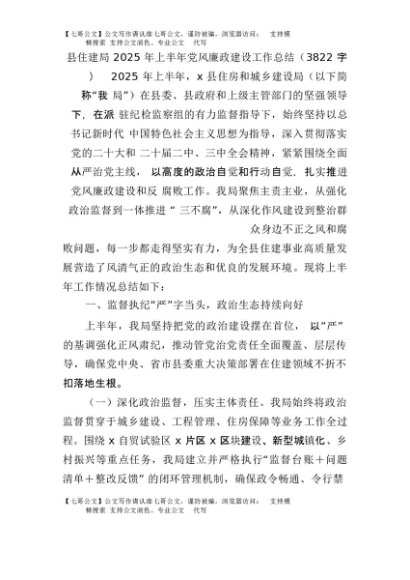 【七哥公文】2025年:县住建局2025年上半年党风廉政建设工作总结(3822字)+更多免费公文+VX:QiGeGongWen2024