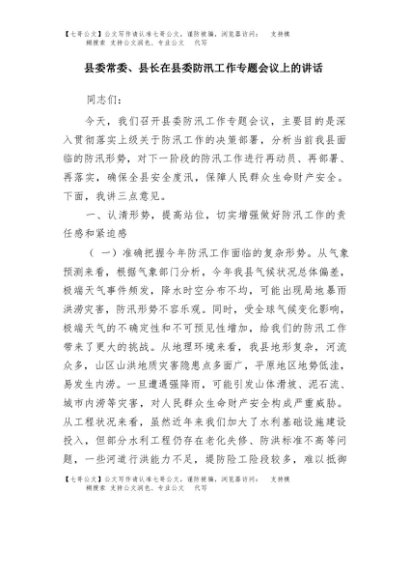 / 【七哥公文】2025年:县委常委、县长在县委防汛工作专题会议上的讲话+更多免费公文+VX:QiGeGongWen2024