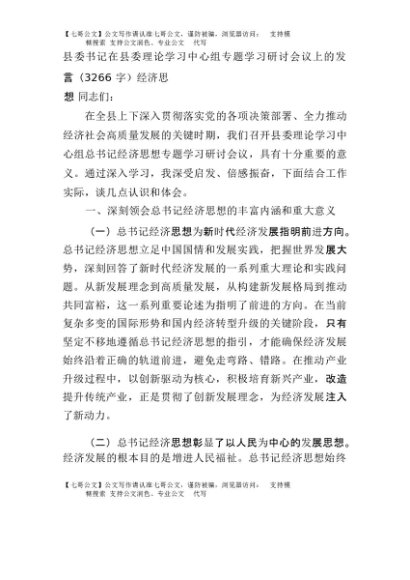 【七哥公文】2025年:县委书记在县委理论学习中心组专题学习研讨会议上的发言(3266字)经济思想+更多免费公文+VX:QiGeGongWen2024