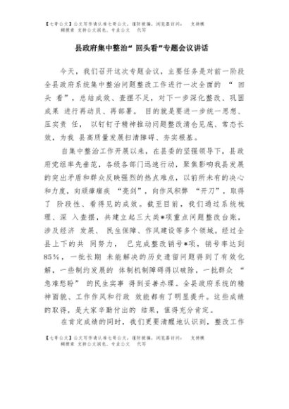 / 【七哥公文】2025年:县政府集中整治“回头看”专题会议讲话+更多免费公文+VX:QiGeGongWen2024