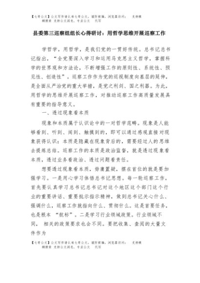 【七哥公文】2025年:县委第三巡察组组长心得研讨:用哲学思维开展巡察工作+更多免费公文+VX:QiGeGongWen2024