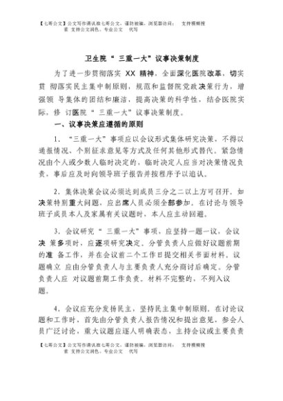 【七哥公文】2025年:卫生院“三重一大”议事决策制度+更多免费公文+VX:QiGeGongWen2024
