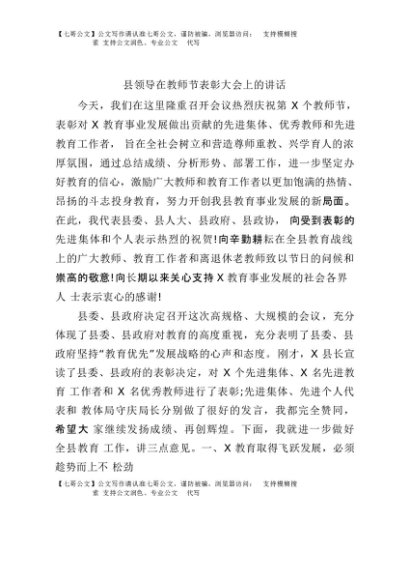 / 【七哥公文】2025年:县l领导在教师节表彰大会上的讲话+更多免费公文+VX:QiGeGongWen2024