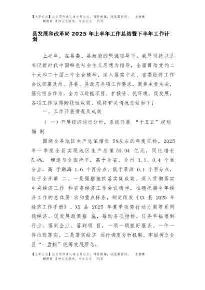 【七哥公文】2025年:县发展和改革局2025年上半年工作总结暨下半年工作计划+更多免费公文+VX:QiGeGongWen2024
