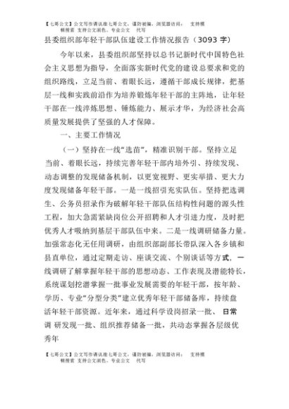 【七哥公文】2025年:县委组织部年轻干部队伍建设工作情况报告(3093字)+更多免费公文+VX:QiGeGongWen2024