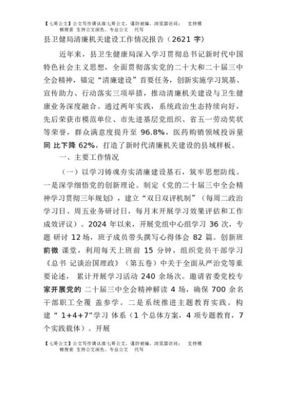/ 【七哥公文】2025年:县卫健局清廉机关建设工作情况报告(2621字)+更多免费公文+VX:QiGeGongWen2024