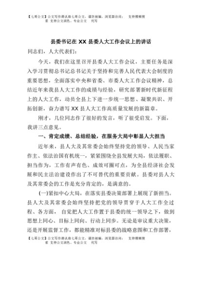 / 【七哥公文】2025年:县委书记在XX县委人大工作会议上的讲话+更多免费公文+VX:QiGeGongWen2024