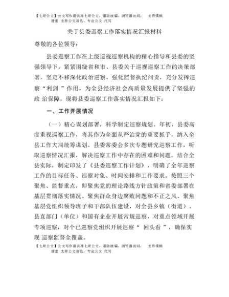 / 【七哥公文】2025年:县委巡察工作落实情况总结汇报+更多免费公文+VX:QiGeGongWen2024
