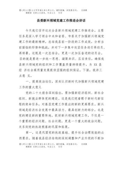 / 【七哥公文】2025年:县委新兴领域党建工作推进会讲话+更多免费公文+VX:QiGeGongWen2024